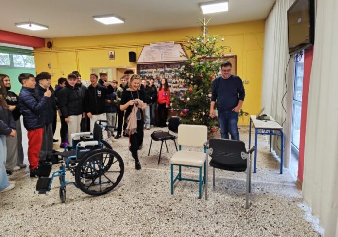 Στο πλαίσιο του προγράμματος πραγματοποιήθηκε αναλυτική ενημέρωση για αναπηρικά βοηθήματα και τεχνικές υποστήριξης ατόμων με κινητικές και οπτικές δυσκολίες από την κ. Γκάνια, της Εταιρείας e-frontida Μπαταβάνης – Γκάνια ΟΕ που δραστηριοποιείται στην πόλη μας, η οποία παρουσίασε αναπηρικό αμαξίδιο και μπαστούνι τυφλών, εξηγώντας τη χρήση τους, τον τρόπο λειτουργίας τους και τη συμβολή τους στην καθημερινή αυτονομία των ατόμων με αναπηρία.