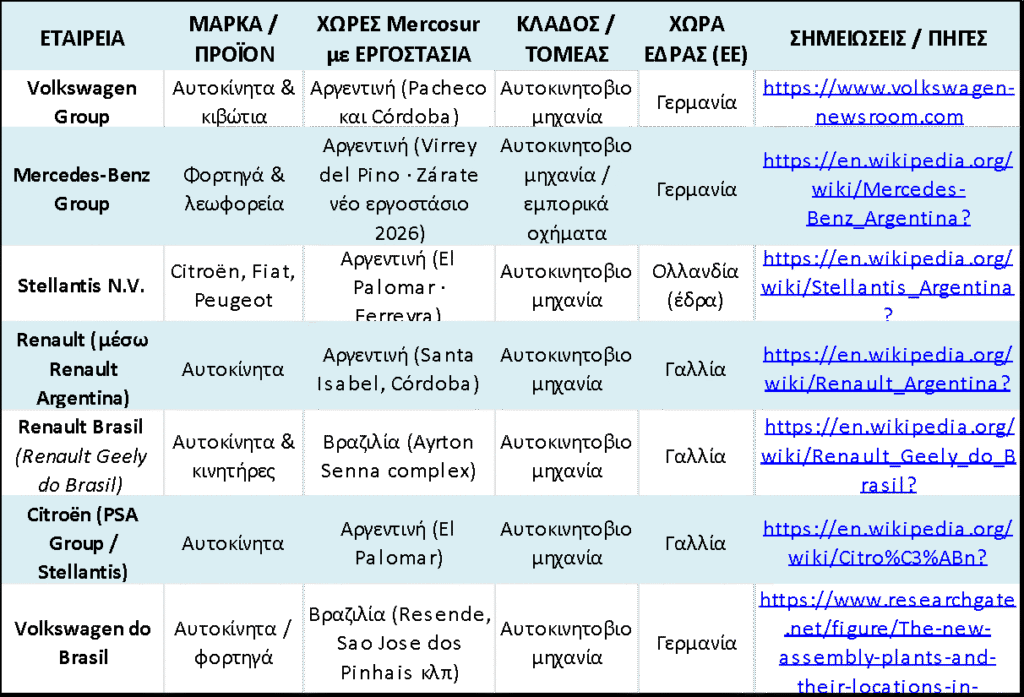 Στο παραπάνω γράφημα, απεικονίζεται η «ευρωπαϊκή» παρουσία στις χώρες της MERCOSUR.