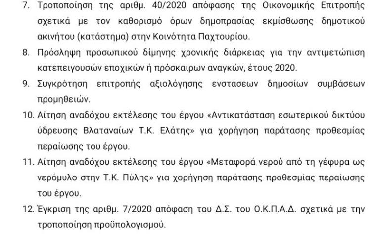 Με δώδεκα θέμα ημερήσιας διάταξης στην ατζέντα της, συνεδρίασε το μεσημέρι στη 1:00 & στην αίθουσα συνεδριάσεων του δημ. Καταστήματος στην Πύλη, η Οικονομική Επιτροπή του Δ. Πύλης.