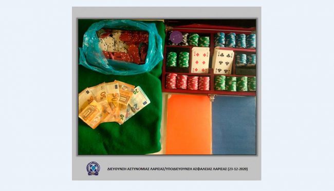 Συνελήφθησαν, χθες (23-12-2020) τις πρώτες πρωινές ώρες στη Λάρισα, από αστυνομικούς της Υποδιεύθυνσης Ασφάλειας Λάρισας, -14- άτομα, εκ των οποίων -10- για παράβαση του νόμου περί παιγνίων και για παραβίαση των μέτρων για την πρόληψη ασθενειών και οι υπόλοιποι -4- για παραβίαση των μέτρων για την πρόληψη ασθενειών.