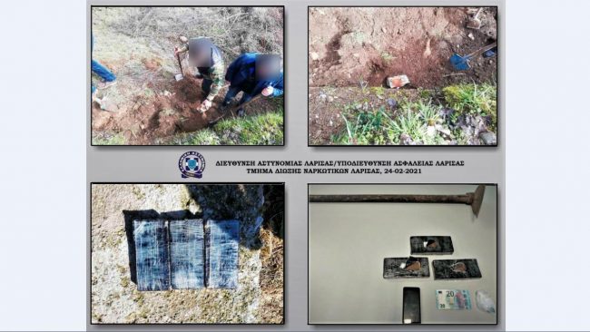 Ειδικότερα, ύστερα από κατάλληλη αξιοποίηση στοιχείων για κατοχή και διακίνηση ποσοτήτων ηρωίνης από τον δράστη, οι αστυνομικοί τον κατέλαβαν σε αγροτική περιοχή να έχει θαμμένες σε «κρύπτη» επί του εδάφους τρεις νάιλον συσκευασίες με ηρωίνη, συνολικού βάρους 1 κιλού και 548 γραμμαρίων.