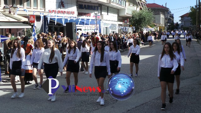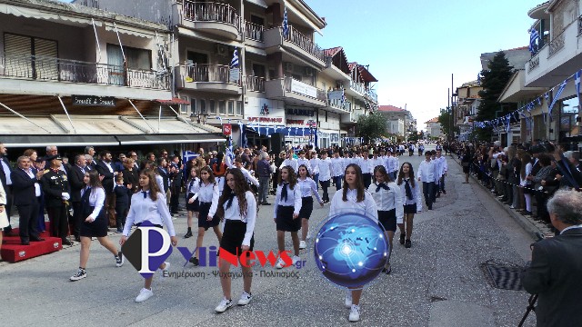 Ακολούθως πραγματοποιήθηκε η μαθητική παρέλαση επί της κεντρικής οδού της πόλης.