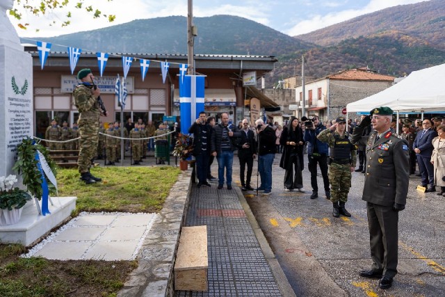 Στεφάνια προς τιμήν του Συνταγματάρχη Πεζικού κ.Γεωργίου Βούλγαρη κατέθεσαν, ο Αρχηγός ΓΕΕΘΑ Στρατηγός κ.Δημήτριος Χούπης και ο Δήμαρχος Μουζακίου.