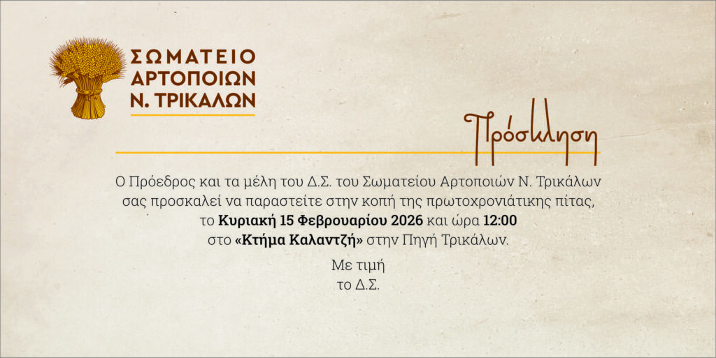 Την Κυριακή 15/2 η κοπή της Βασιλόπιτας των Αρτοποιών Ν. Τρικάλων