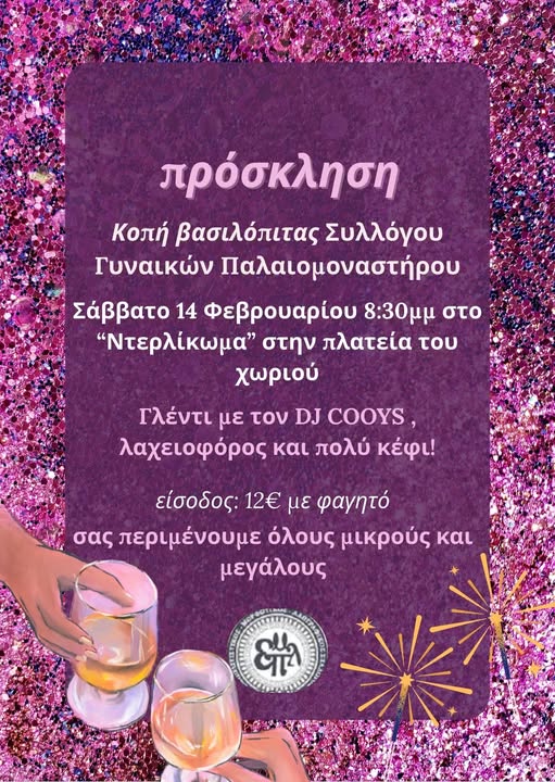 Το Σάββατο 14/2 η εκδήλωσης κοπής της Βασιλόπιτας, από τον Σύλλογο Γυναικών Παλαιομοναστήρου