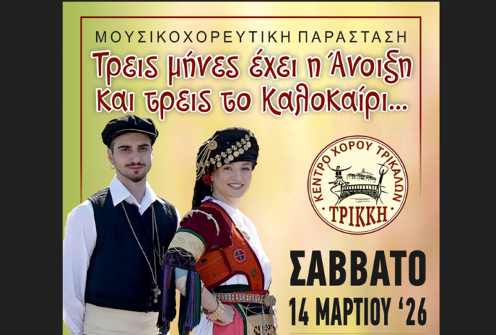 H «Τρίκκη» Κέντρο Χορού Τρικάλων το Σάββατο 14 Μαρτίου παρουσιάζει τη μουσικοχορευτική παράσταση με τίτλο «Τρεις μήνες έχει η Άνοιξη και τρεις το Καλοκαίρι», μια καλλιτεχνική δημιουργία που εμπνέεται από τις εποχές, τη φύση και τον κύκλο της ζωής.