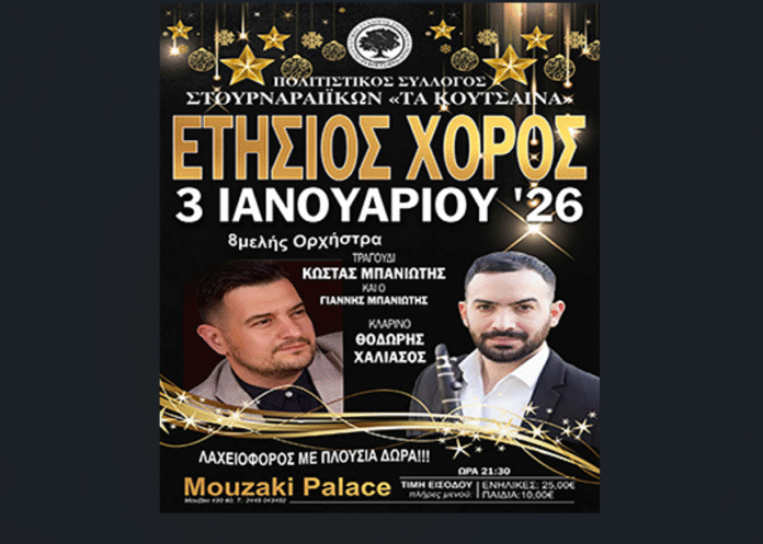 Το Σάββατο 3/1/26 ο ετήσιος χορός του ΠΣ Στουρναραίικων, στο Mouzaki Palace