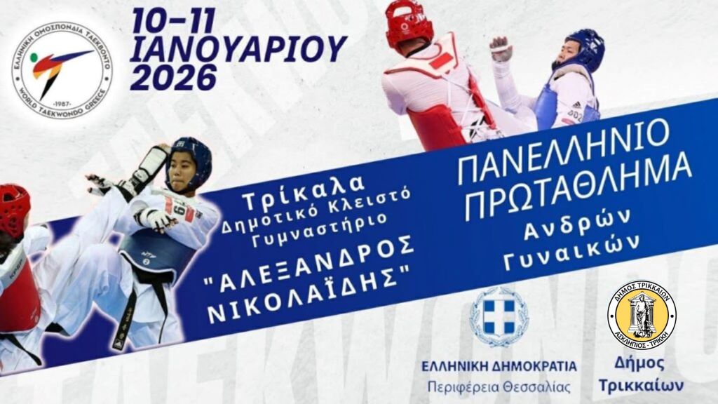 Πρόκειται για το Πανελλήνιο Πρωτάθλημα Τάε Κβο Ντο Ανδρών – Γυναικών «Αλέξανδρος Νικολαΐδης» που θα διεξαχθεί το διήμερο 10 και 11 Ιανουαρίου 2026 στο Δημοτικό Κλειστό Γυμναστήριο Τρικάλων (έναντι 2ου Λυκείου).