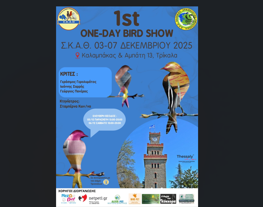 Το πενθήμερο 3 έως 7 Δεκεμβρίου 2025 ο ΣΚΑΘ διοργανώνει τον Πρώτο Μονοήμερο Διαγωνισμό Πουλιών (1st One-day Bird Show), στον χώρο δίπλα από το Στ΄ ΚΑΠΗ (Καλαμπάκας και Αμπάτη 13).