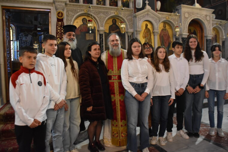 Οι μαθητές συμμετείχαν με ευλάβεια στη Θεία Λειτουργία και είχαν την ευκαιρία να εκφράσουν τις θερμότερες ευχές τους προς τον Σεβασμιώτατο, ο οποίος με πατρική αγάπη τους υποδέχθηκε, τους ευλόγησε και τους απηύθυνε λόγους πνευματικής καθοδήγησης και ενθάρρυνσης.