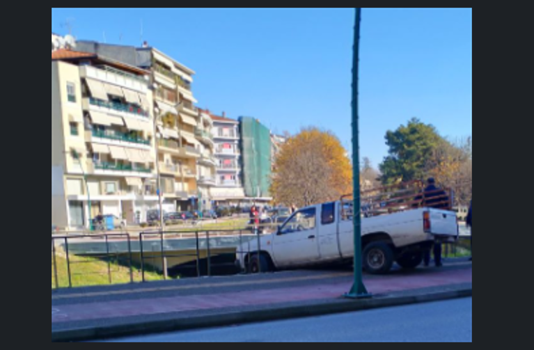 Ηλικιωμένος οδηγός Ι.Χ αγροτικού, άγνωστο πώς, χτύπησε αρχικά στο πεζοδρόμιο και στη συνέχεια αφού έσπασε τα προστατευτικά κυγκλιδώματα , οι μπροστινοί τροχοί βρέθηκαν στο κενό και παραλίγο να πέσει στον Ληθαίο.