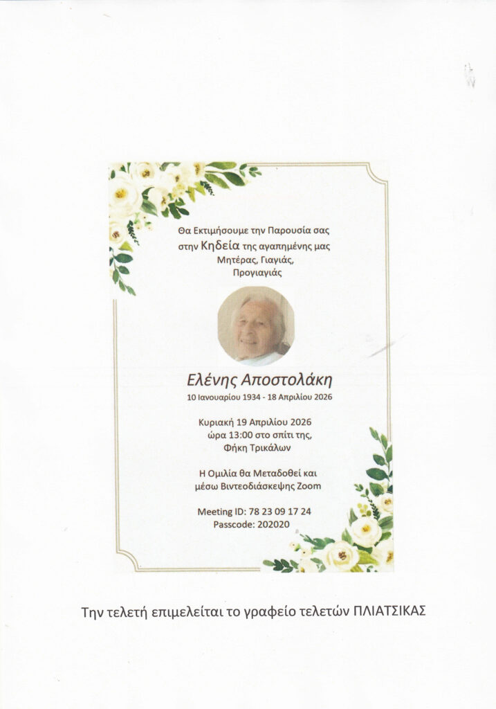 Φήκη: “Έφυγε” από τη ζωή η Αποστολάκη
