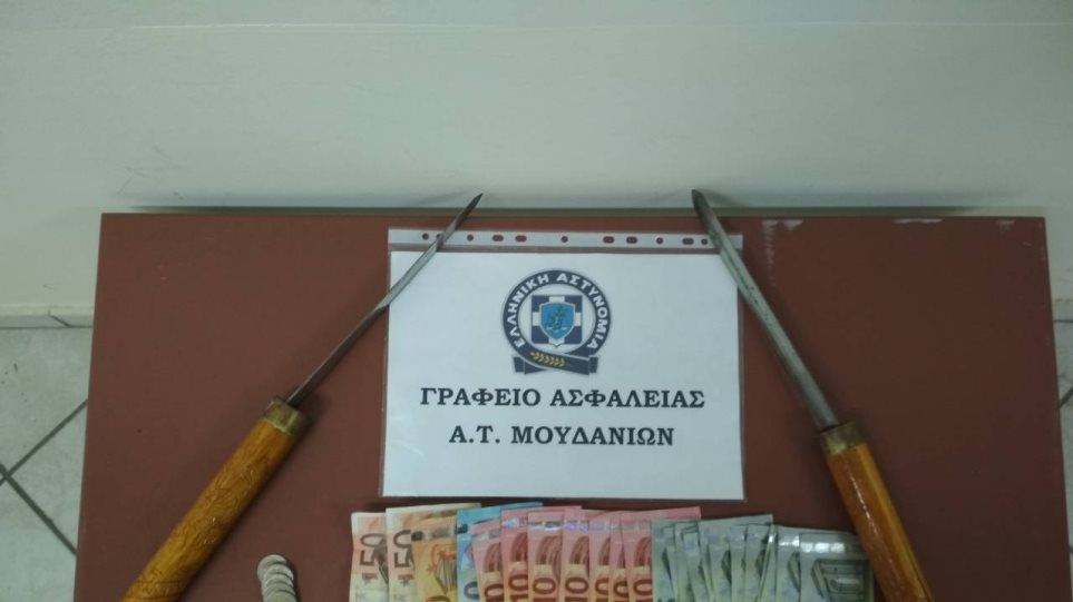 Μια παράξενη ληστεία σημειώθηκε τα ξημερώματα της Πέμπτης σε κατάστημα γνωστής αλυσίδας καφέ στα Νέα Μουδανιά Χαλκιδικής, καθώς εισέβαλαν σε αυτό τρεις νεαροί έχοντας καλυμμένα τα πρόσωπά τους, οι οποίοι κρατούσαν αυτοσχέδια ξίφη και απείλησαν με αυτά τον υπάλληλο που είχε βάρδια.