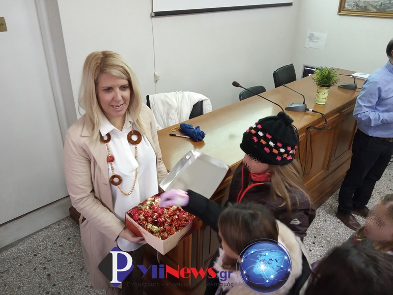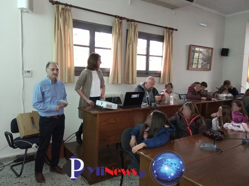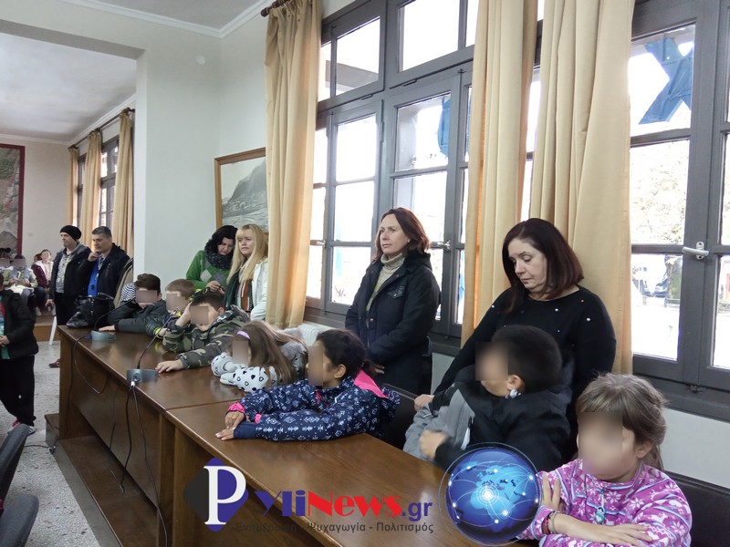 Μαθητές και δασκάλους,υποδέχθηκαν στο Δημαρχείο & στην αίθουσα συνεδριάσεων του δημ. Συμβουλίου ο Πρόεδρος αυτού κ. Χρ. Νάκος, η Πρόεδρος του ΟΚΠΑΔ κα Μαρίνα Πανάγου και η εκπρόσωπος του Γραφείου Τουρισμού του Δήμου κα Βάνα Διαγωμά.
