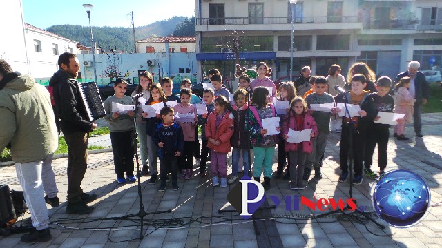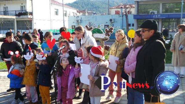 Μία Χριστουγεννιάτικη πανδαισία με καθαρά γιορτινό ηχόχρωμα, πραγματοποιήθηκε σήμερα το πρωί στην κεντρική πλατεία της Πύλης, με την συμμετοχή των μαθητών όλων των Δημοτικών Σχολείων του Δ. Πύλης, που χωρίς να το σκεφτούν και πολύ, ανταποκρίθηκαν στο κάλεσμα της Α’θμιας Εκπ/σης Τρικάλων, δίνοντας βροντερό “παρών”, σκορπώντας πολλά χαμόγελα και γλυκές φωνούλες παντού, θυμίζοντας σε όλους μας ‘ότι τα Χριστούγεννα είναι εδώ!!!