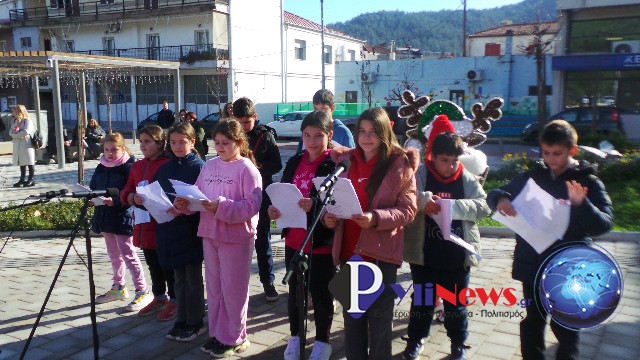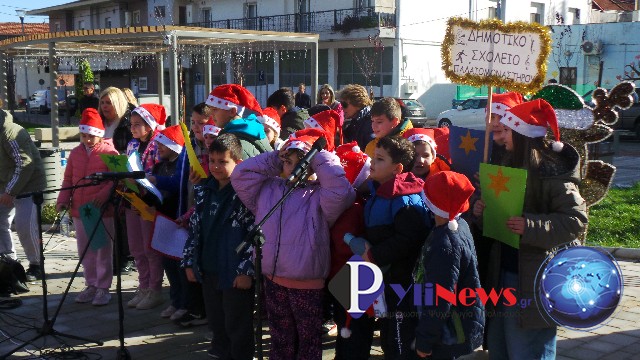 Μαθητές και μαθήτριες από τα σχολεία όλου του Δ. Πύλης, πλημμύρισαν την πλατεία και διαθέτοντας ζωντάνια, πολύ κέφι και φυσικά την ζωογόνο εκ φυσικού τους, παιδική αφέλεια, παρουσίασαν ένα πλούσιο καλλιτεχνικό πρόγραμμα με Χριστουγεννιάτικα κάλαντα και τραγούδια, από διάφορες περιοχές της χώρας, δίνοντας αμιγώς χριστουγεννιάτικο, γιορτινό τόνο, βάζοντάς μας όλους, στο κλίμα των ημερών…