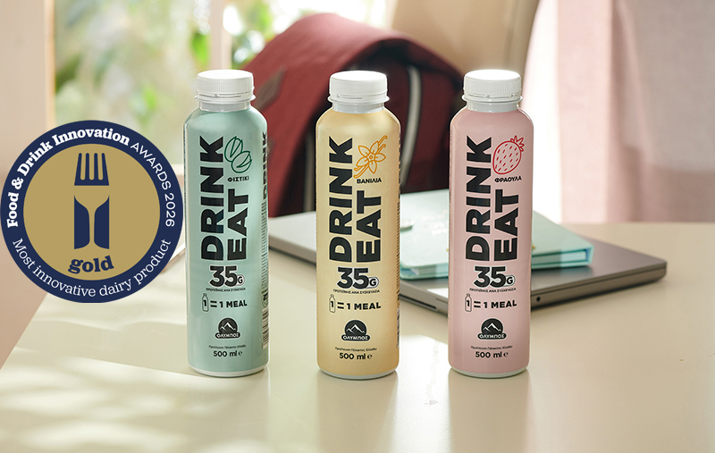 Το DRINK EAT ΟΛΥΜΠΟΣ διακρίθηκε στην κατηγορία Most Innovative Dairy Product, καταλαμβάνοντας την 1η θέση, χάρη στον πρωτοποριακό του χαρακτήρα και τη μοναδική εμπειρία κατανάλωσης που προσφέρει.
