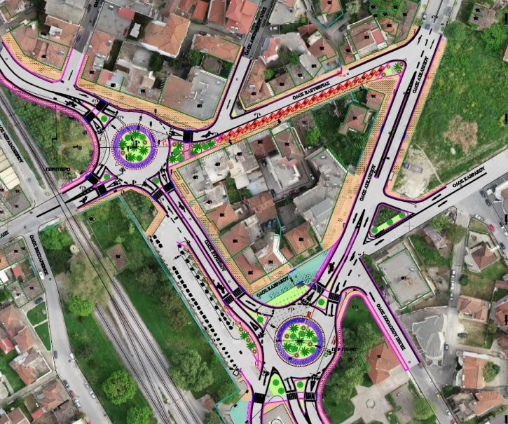 – Κυκλικός κόμβος διαμέτρου d=17.00μ. στη διασταύρωση των οδών Ελευθερίας, Πύλης, Ευρυπίδου και Μετεώρων