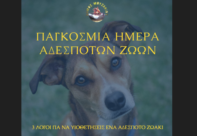 Η 4η Απριλίου, Παγκόσμια Ημέρα Αδέσποτων Ζώων, αποτελεί για τον Δήμο Μουζακίου ημέρα ευθύνης και ουσιαστικής ευαισθητοποίησης.