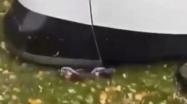 Σε ένα βίντεο που τράβηξε περαστικός, διακρίνονται μόνο τα πόδια του παιδιού που προεξέχουν μπροστά από το τραμ.