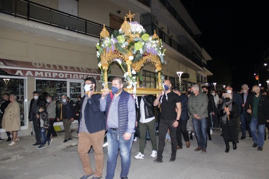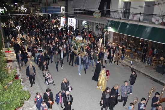 Εψάλλησαν τα Εγκώμια και μετά ακολούθησε η περιφορά του Επιταφίου στους δρόμους της Πύλης, σε μία μεγαλειώδη πομπή που την αποτελούσαν εκατοντάδες πιστοί.