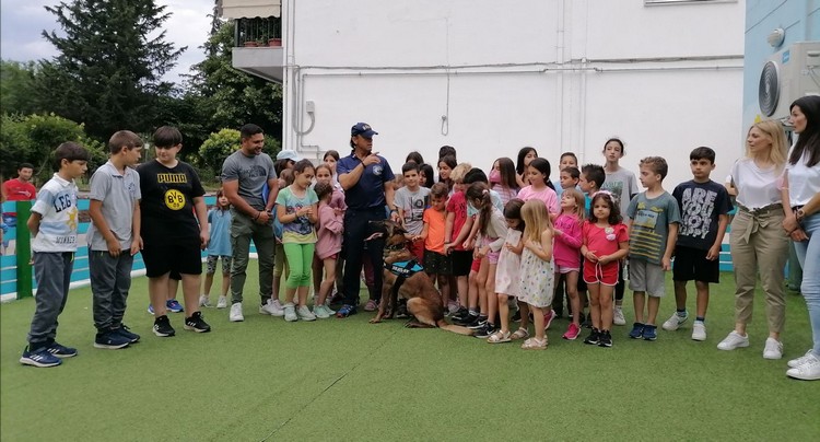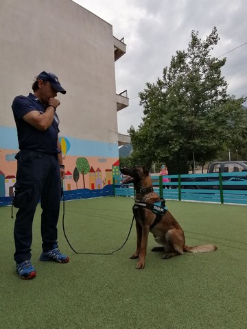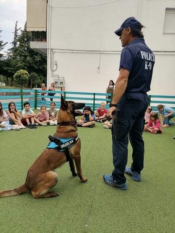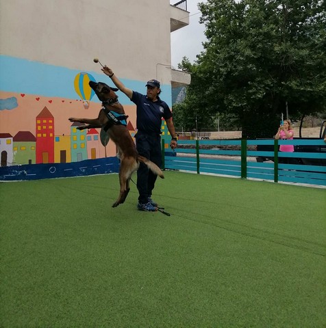 Ακόμη με τη βοήθεια του αστυνομικού σκύλου(Κ9), οι αστυνομικοί ανέλυσαν στα παιδιά τον τρόπο δράσης και εκπαίδευσης ενός σκύλου-αστυνομικού αλλά και τον σημαντικότατο ρόλο του στη διενέργεια ερευνών για την ανίχνευση απαγορευμένων ουσιών.