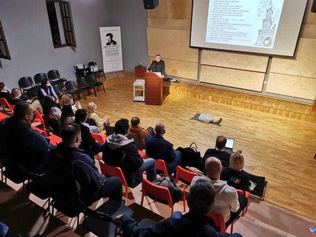Η εκδήλωση αφορούσε τις δυνατότητες χρήσης του απινιδωτή για την υποστήριξη της ΚΑΡΠΑ (καρδιοπνευμονική αναζωογόνηση), σε προπονητές/τριες και αθλητές/τριες των τρικαλινών αθλητικών σωματείων.