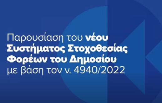 Στο βίντεο, το οποίο έχει αναρτηθεί στο κανάλι του Υπουργείου Εσωτερικών στο YouTube με τίτλο «Παρουσίαση του νέου Συστήματος Στοχοθεσίας Φορέων του Δημοσίου με βάση τον ν.4940/2022» περιγράφεται με σαφήνεια η διαδικασία, οι τρόποι επίτευξης και το περιεχόμενο της στοχοθεσίας και περιλαμβάνονται απαντήσεις στις πιο συχνές ερωτήσεις.