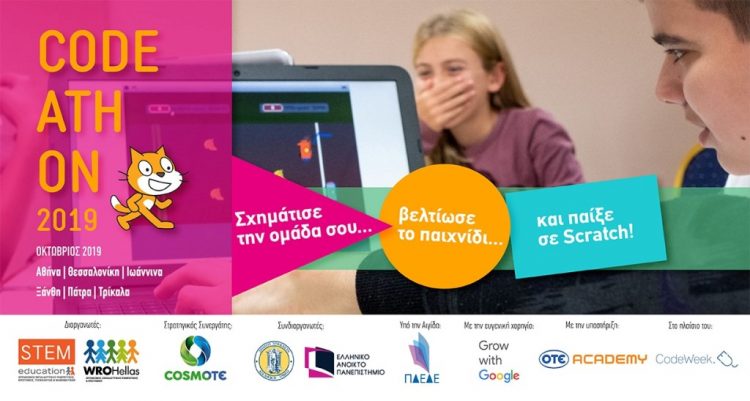 Το CodeAthon διοργανώνεται από τον STEM Education στο πλαίσιο της Ευρωπαϊκής Εβδομάδας Προγραμματισμού Europe Code Week 2019, σε συνεργασία με τον WRO Hellas και με Στρατηγικό Συνεργάτη την COSMOTE. Η δράση θα υλοποιηθεί με την υποστήριξη της Google, με τη συνδιοργάνωση του Δήμου Τρικκαίων και του Ελληνικού Ανοικτού Πανεπιστημίου ΕΑΠ και με τη φιλοξενία της OTEAcademy. Στο πλαίσιο του CodeAthon θα προσφερθούν δωρεάν εντατικά σεμινάρια κατάρτισης εκπαιδευτικών στον προγραμματισμό με scratch. Πληροφορίες για το προηγούμενο CodeAthon μπορούν να βρεθούν εδώ: https://wrohellas.gr/2018/10/23/ολοκληρώθηκε-το-codeathon-2018/