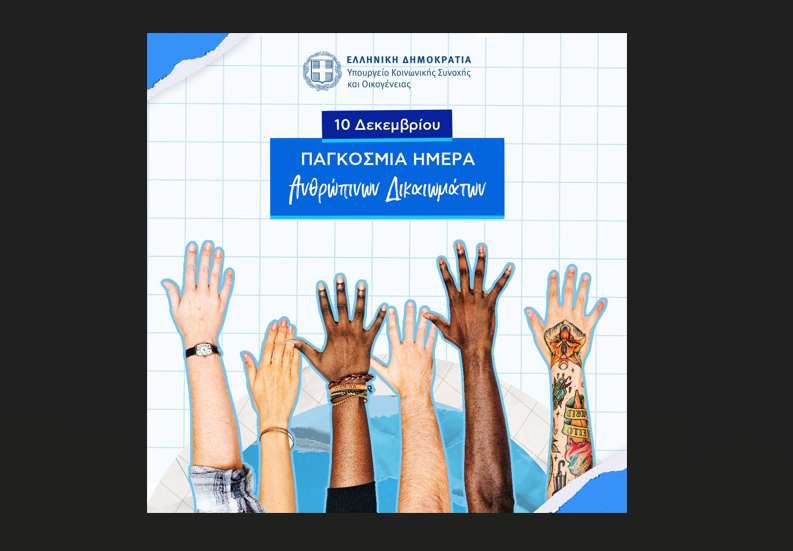 Το Υπουργείο Κοινωνικής Συνοχής και Οικογένειας, μέσα από πολιτικές για την ισότητα των φύλων, την πρόσβαση των ατόμων με αναπηρία, την αξιοπρεπή διαβίωση όλων ανεξαιρέτως των πολιτών αλλά και συλλήβδην η Ελληνική Κυβέρνηση με πολιτικές που στοχεύουν στην επιτάχυνση απονομής της Δικαιοσύνης και την αποτελεσματική προστασία των ατομικών και κοινωνικών ελευθεριών των πολιτών, καθημερινά επαναλαμβάνει την πάγια δέσμευση της, τα ανθρώπινα δικαιώματα να μην αποτελούν έννοια διακηρυκτική, αλλά οδοδείκτη στη σχέση κράτους και πολιτών. Και είναι ακριβώς, αυτός ο δρόμος που έχουμε διανύσει, που ενεργοποιεί το μόνιμο παράδοξο της προόδου: κάθε βήμα προς τα εμπρός να αποκαλύπτει το μονοπάτι που μένει να διανυθεί.