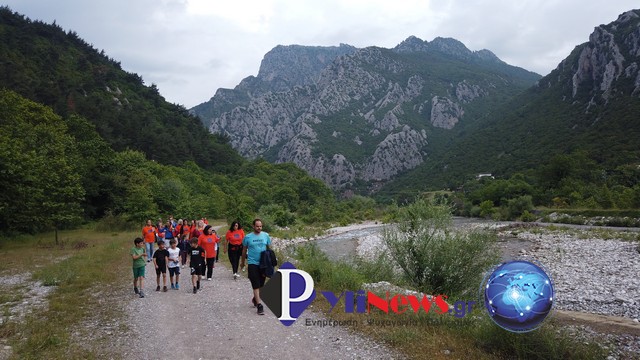 Η περιπατητές, φορώντας μπλουζάκι σε χρώμα πορτοκαλί, χαρακτηριστικό της περίστασης καθώς υποδειλώνει την “ζωή κα την ελπίδα”, συγκεντρώθηκαν στο Δημαρχείο της Πύλης κι από εκεί περνώντας την κρεμαστή γέφυρα “Αθ. Δερβέναγας”, διένυσαν μία πανέμορφη διαδρομή στο φαράγγι της Πύλης, όπου το πράσινο των δέντρων και το υγρό στοιχείο, ο Πορταϊκός, έδεναν αρμονικά με τα φυσικά, αρχιτεκτονικά, αρχαιολογικά και λαογραφικά μνημεία της περιοχής.