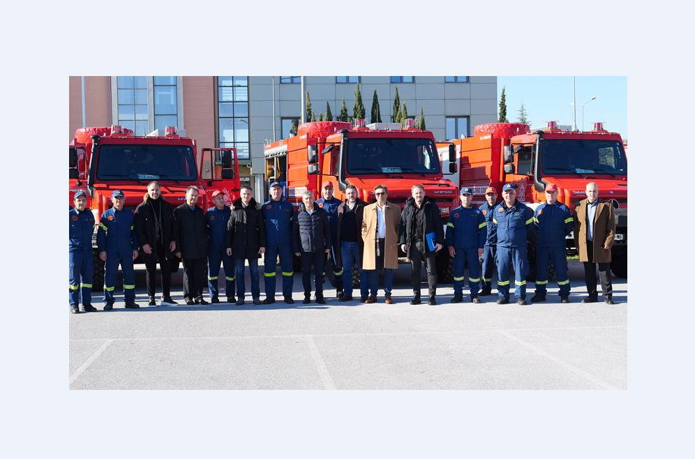 Παραδίδουμε σήμερα 8 νέα πυροσβεστικά οχήματα παντός εδάφους (4Χ4) χωρητικότητας 4.000 λίτρων νερού και αφρού. Κύριο έργο τους είναι η δασοπυρόσβεση με δυνατότητα να επιχειρούν σε ανώμαλα εδάφη και δύσβατες περιοχές. Διαθέτουν πρόσθετο-κατάλληλο εξοπλισμό για να επεμβαίνουν και σε άλλα συμβάντα αρμοδιότητας του Πυροσβεστικού Σώματος. Τους επόμενους μήνες και πριν την έναρξη της αντιπυρικής περιόδου παραδίδουμε ακόμη δεκατέσσερα οχήματα πυροσβεστικού τύπου pick-up 4Χ4, με δεξαμενή νερού 500 λίτρων και διπλοκάμπινα μεταφοράς προσωπικού.
