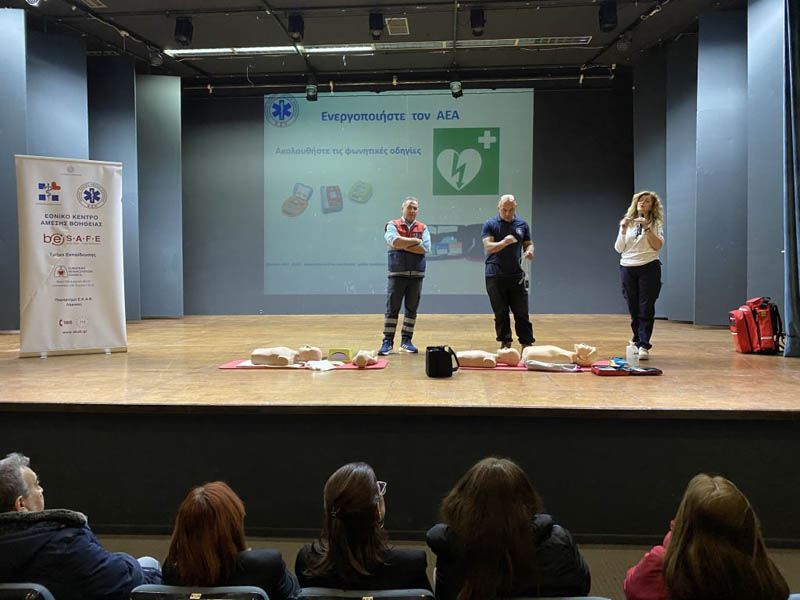 Την ενημέρωση με επίδειξη ΚΑΡΠΑ και χρήση απινιδωτή, πραγματοποίησε την Τετάρτη 22 Φεβρουαρίου 2023 η εκπαιδευτική ομάδα του ΕΚΑΒ Θεσσαλίας – τομέας Τρικάλων, που την αποτελούσαν οι κ.κ. Ιφιγένεια Μπάτζιου, Νίκος Βράντζας, Βασίλης Ρακοβίτης, πληρώματα ασθενοφόρου – διασώστες.