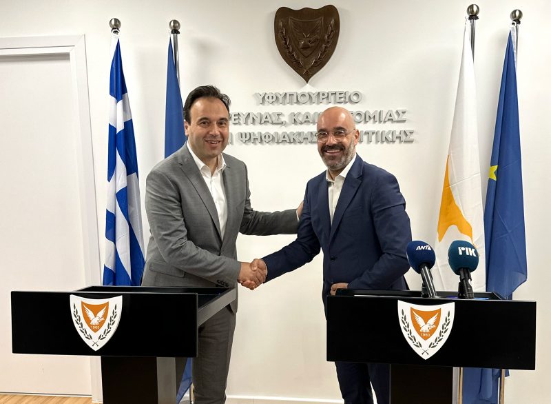 Μέσα από τη συνεργασία Ελλάδας και Κύπρου ευρύτερα, αλλά και την ανταλλαγή καλών πρακτικών και τεχνογνωσίας μέσω των δύο Υπουργείων, θέλουμε να συνεχίσουμε να αναδεικνύουμε τη φωτεινή πλευρά των δύο χωρών. Στόχος μας είναι, με σύμμαχό μας την τεχνολογία και αξιοποιώντας τις δυνατότητες που μας παρέχει η Τεχνητή Νοημοσύνη, να συνεχίσουμε να κάνουμε την καθημερινότητα πολιτών και επιχειρήσεων, φιλικότερη, ευκολότερη και με λιγότερη γραφειοκρατία».
