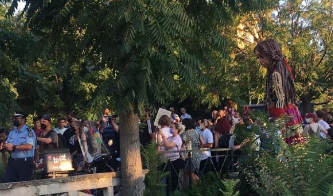 Ωστόσο, στη γέφυρα του Πηνειού είχαν συγκεντρωθεί και άτομα που διαφωνούν με την εκδήλωση, με αποτέλεσμα να ξεκινήσουν προπηλακισμοί, από τη μια και την άλλη μεριά και τελικά να δημιουργηθούν μικροσυμπλοκές -που οδήγησαν στην επέμβαση της Αστυνομίας.