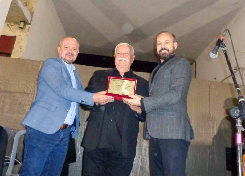 Έπειτα ο Δήμαρχος Μουζακίου και ο Πρόεδρος της Ένωσης Πολιτιστικών Συλλόγων κ.Μανώλης Στεργιόπουλος απένειμαν στον Χρυσόστομο Μητροπάνο τιμητική πλακέτα, ευχαριστώντας τον για την προσφορά και το έργο του και ευχόμενοι να είναι πάντα γερός και δημιουργικός.