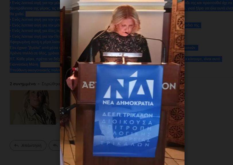 Υπεύθυνη οικογενειακής πολιτικής και ισότητας των φύλων της ΔΕΕΠ Ν. Τρικάλων