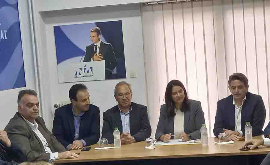 Η Υπουργός Παιδείας Νίκη Κεραμέως στα πλαίσια επίσκεψης της στα Τρίκαλα συμμετείχε σε σύσκεψη στα γραφεία της ΔΕΕΠ( πρώην ΝΟΔΕ) της ΝΔ.