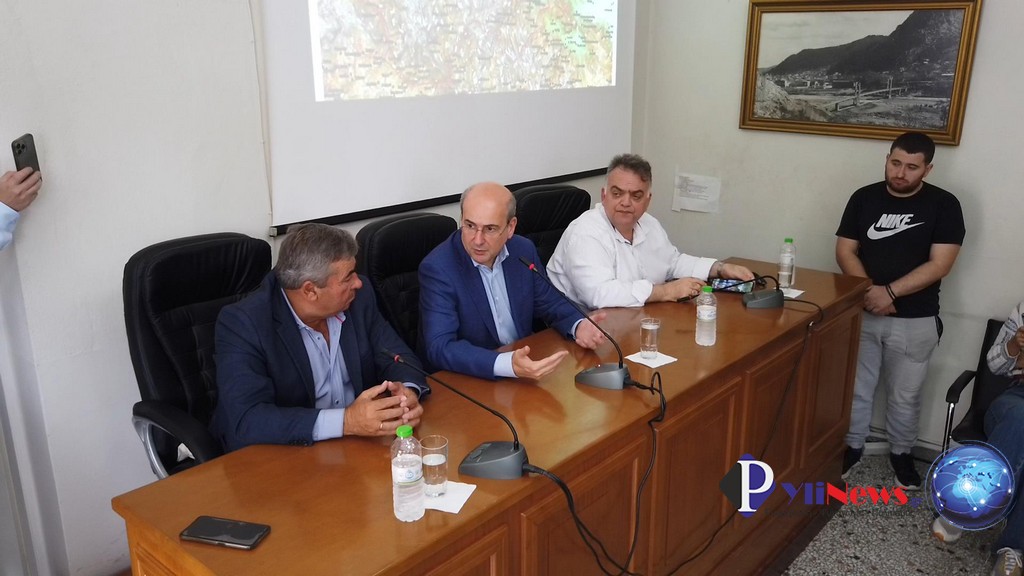 Στο Δημοτικό Κατάστημα Πύλης, τον Υπουργό υποδέχτηκε σε θερμό και εγκάρδιο κλίμα ο Δήμαρχος Πύλης κ. Κώστας Μαράβας, τον οποίο και συνόδευσε την αίθουσα συνεδριάσεων του ΔΣ, όπου και παρετέθη μία μίνι συνέντευξη Τύπου, παρουσία Αντιδημάρχων, δημοτικών και τοπικών συμβούλων του Δ. Πύλης.