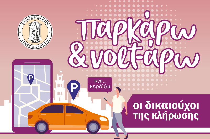 Συνεχίζονται οι καινοτομίες από τον Δήμο Τρικκαίων για το πρόγραμμα «Παρκάρω και Volt-άρω». Εκτός από το SMS που ήδη έχει σταλεί σε όσους/ες κληρώθηκαν, οι ίδιοι/ες και όσοι/ες δεν μπόρεσαν να λάβουν το SMS, μπορούν να το μάθουν και από σχετική εφαρμογή στην ιστοσελίδα του Δήμου Τρικκαίων.