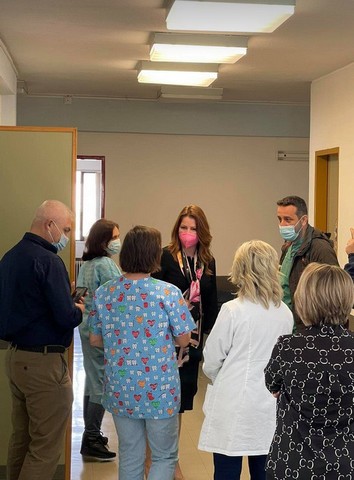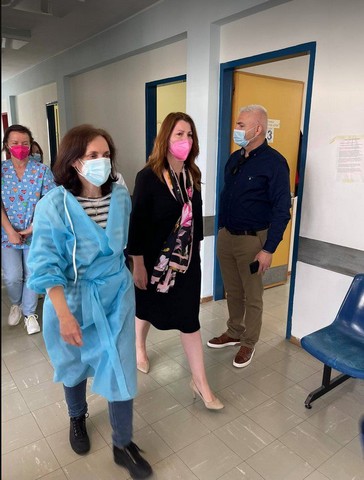 Η κα. Παπακώστα συνομιλώντας με την Διευθύντρια του Κ. Υ. κα. Βιολέτα Ροκά, αλλά και με τους ιατρούς και νοσηλευτές του Κ. Υ., ενημερώθηκε για την ροή των εμβολιασμών και την λειτουργία του εμβολιαστικού κέντρου, καθώς και για τις υπόλοιπες ανάγκες του Κέντρου Υγείας, όπως η ανάγκη προμήθειας ενός νέου Ψηφιοποιητή – Αναλυτή, για την καλύτερη λειτουργία του ακτινολογικού κέντρου, την αντικατάσταση του χειρουργικού κρεβατιού και τέλος για το ζήτημα της παροχής ασθενοφόρου οχήματος για το Κ. Υ.