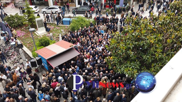 Τον κ. Μητσοτάκη, υποδέχτηκαν στην αρχή της Ασκληπιού, όπου έχει στηθεί το προεκλογικό περίπτερο της γαλάζιας παράταξης & απέναντι από τα γραφεία του κόμματος, οι υποψήφιοι βουλευτές του Νομού ο Περιφεριάρχης κ. Κ. Αγοραστός & ο Αντιπεριφερειάρχης κ. Χρ. Μιχαλάκης, εν μέσω παρατεταμένων χειροκροτημάτων & συνθημάτων νίκης της παράταξης.