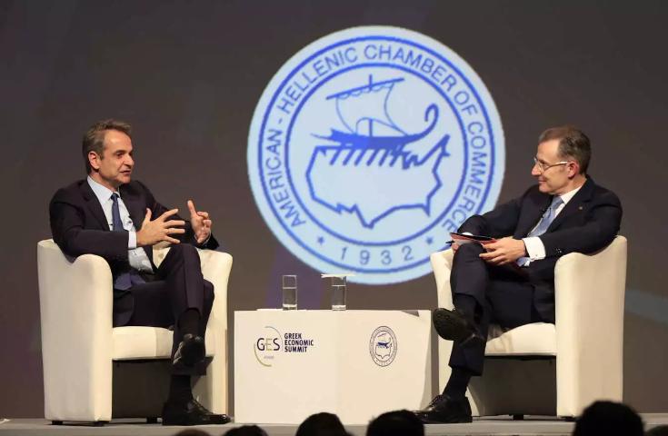 Στη συζήτηση που είχε ο πρωθυπουργός Κυριάκος Μητσοτάκης με τον Πρόεδρο του Ελληνοαμερικανικού Εμπορικού Επιμελητηρίου (American-Hellenic Chamber of Commerce) Νικόλαο Μπακατσέλο στο πλαίσιο εκδήλωσης (Greek Economic Summit-GES) που οργανώνει το Επιμελητήριο με τίτλο “Fostering a Sustainable Economic Future Amidst Global Challenges“ (Προώθηση ενός βιώσιμου οικονομικού μέλλοντος εν μέσω παγκόσμιων προκλήσεων), τόνισε πως «χρέος της κυβέρνησης είναι οι αλλαγές και μεταρρυθμίσεις, αλλά και η η σύγκλιση με την υπόλοιπη Ευρώπη».