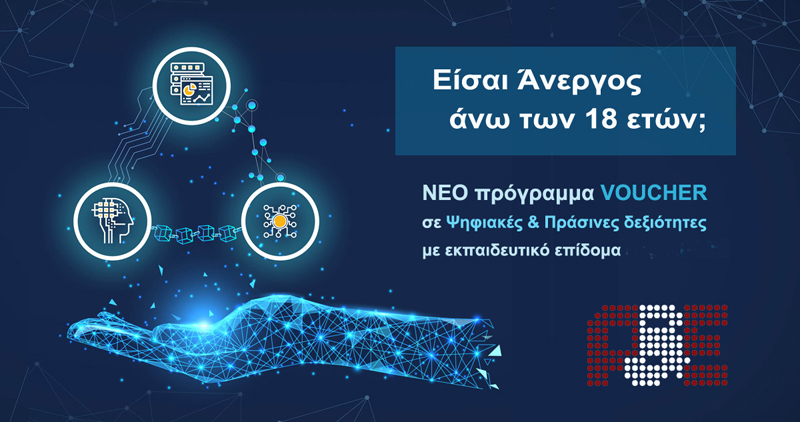 ΝΕΟ ΕΠΙΔΟΤΟΥΜΕΝΟ ΠΡΟΓΡΑΜΜΑ VOUCHER ΓΙΑ ΗΛΙΚΙΑ 18+ ΓΙΑ ΤΗΝ ΑΠΟΚΤΗΣΗ «ΠΡΑΣΙΝΩΝ ΔΕΞΙΟΤΗΤΩΝ» με στόχο τόσο την αποτελεσματική διασύνδεση των ανέργων με την αγορά εργασίας όσο και με τη βελτίωση της απασχολησιμότητας τους και τη διατήρηση των μελλοντικών θέσεων εργασίας