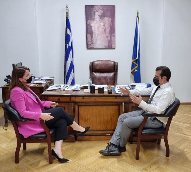 Η κα. Παπακώστα αφού συνεχάρη τον Υπουργό, για την ανάληψη των νέων καθηκόντων του, εστίασε την συζήτηση στη διαχείριση της πανδημίας, ενόψει και του χειμώνα, στην πορεία των εμβολιασμών και την ενημερωτική καμπάνια για την διεύρυνση του τείχους ανοσίας.