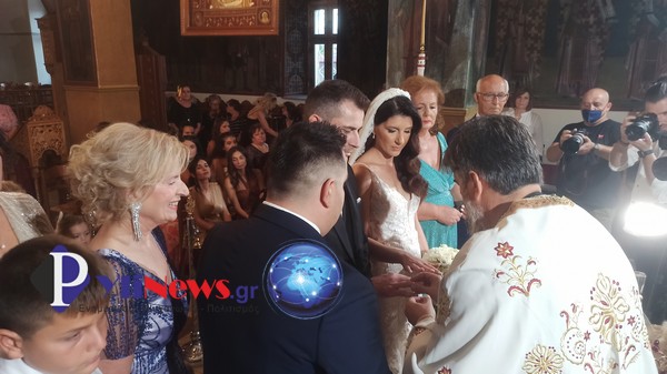 Το ιερό μυστήριο του γάμου τέλεσε ο π. Απ. Μουτογεώργος, συλλειτουργούντος του π. Β. Τσιώκου , ενώ τα νυφικά στέφανα άλλαξε ο Αλέξανδρος Πασχαλίδης.