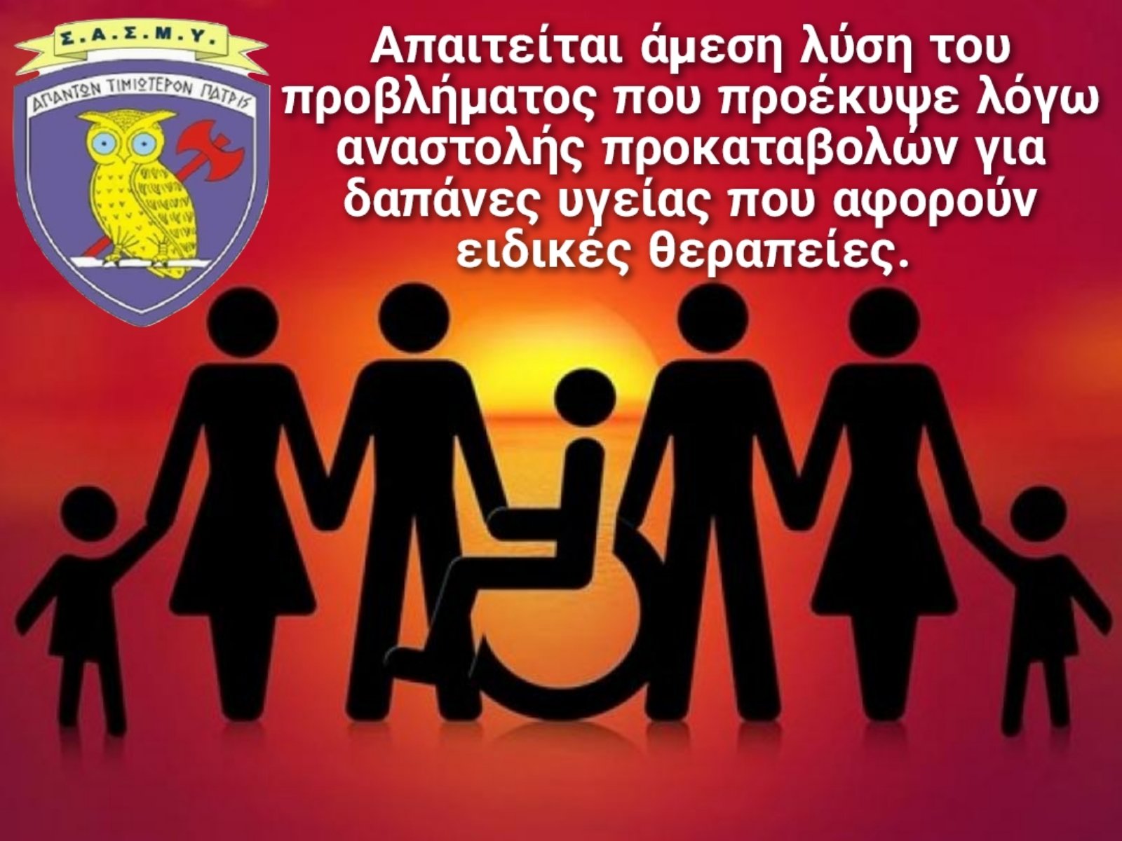 Γνωρίζοντας τις ευαισθησίες σας, ευελπιστούμε στην ανάληψη πρωτοβουλιών από εσάς ώστε να δοθεί λύση άμεσα για την άρση αναστολής προκαταβολών για δαπάνες υγείας που αφορούν φυσιοθεραπείες και ειδικές θεραπείες που αποζημιώνονται κατά πράξη και την πίστωση χρημάτων στους δικαιούχους εντός δεκαημέρου ώστε να μπορέσουν να συνεχίσουν τις θεραπείες τους με εξόφληση των ιδιωτικών κέντρων προς αποφυγή επιδείνωσης της υγείας τους.