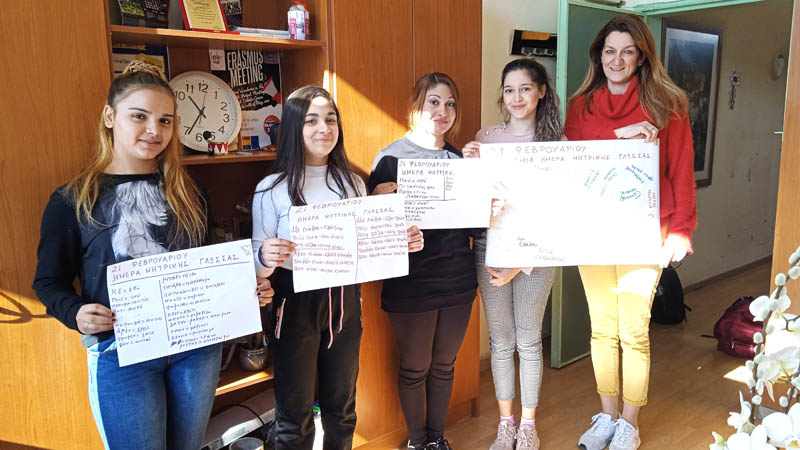 Έτσι είχαμε την ευκαιρία να ακούσουμε τους μαθητές/τριές μας να μιλούν τη μητρική τους γλώσσα, να τραγουδούν σ΄αυτήν, να την γράφουν, να μας μαθαίνουν νέες λέξεις και εκφράσεις σε πολλές γλώσσες. Έτσι ακούσαμε και μάθαμε λίγα Αλβανικά, Σέρβικα, Ρομανί, Ρουμάνικα, Βλάχικα, Γερμανικά, Αγγλικά. Οι μαθητές/τριές μας συνειδητοποίησαν την αξία της μητρικής τους γλώσσας και εκτίμησαν την αξία της.