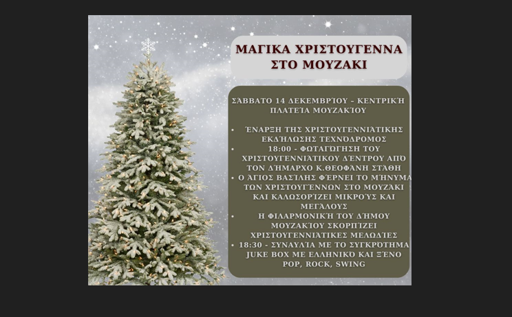Το Σάββατο 14/12 η φωταγώγηση του Χριστουγεννιάτικου Δέντρου, στο Μουζάκι
