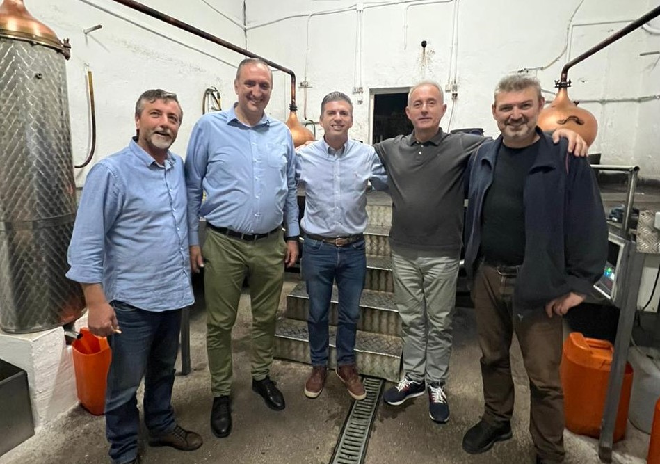 Μαζί του ο προϊστάμενος μηχανικός της ΔΑΕΦΚ Αντώνης Γιαννούτσος – με τον οποίο έχουν αναπτυχθεί σχέσεις φιλίας μετά τον σεισμό – ο δήμαρχος Τυρνάβου Γιάννης Κόκουρας, ο πρόεδρος του Αγροτικού Συλλόγου Δαμασίου  Γιάννης Γκανάς και ο οινοποιός Βάιος Ανδρέου που παράγει εξαιρετικά κρασιά.